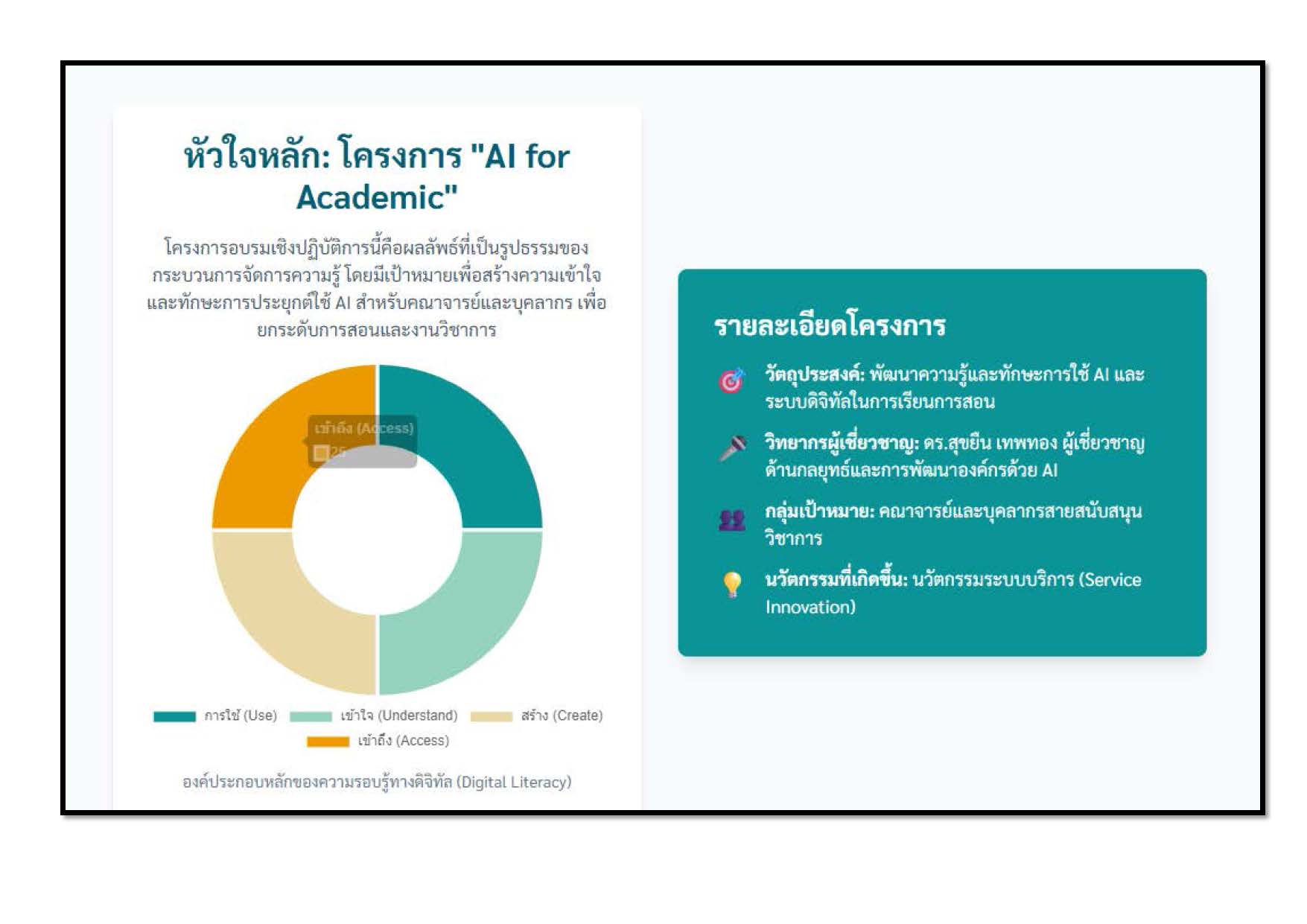 ทักษะเทคโนโลยีดิจิทัล (Digital Skills) มีความสำคัญอย่างมากในยุคปัจจุบัน เนื่องจากเทคโนโลยีได้เข้ามามีบทบาทสำคัญในทุกด้านของชีวิต ทั้งการทำงาน การเรียนรู้ การใช้ชีวิตประจำวัน และการติดต่อสื่อสาร การพัฒนาทักษะเหล่านี้จึงมีความจำเป็นอย่างยิ่ง เพื่อให้สามารถปรับตัวและใช้ประโยชน์จากเทคโนโลยีดิจิทัลได้อย่างมีประสิทธิภาพและประสิทธิผลในการบริการแก่บุคลาการสายวิชาและนักศึกษาของวิทยาลัยการเมืองและการปกครอง มหาวิทยาลัยราชภัฏสวนสุนันทา