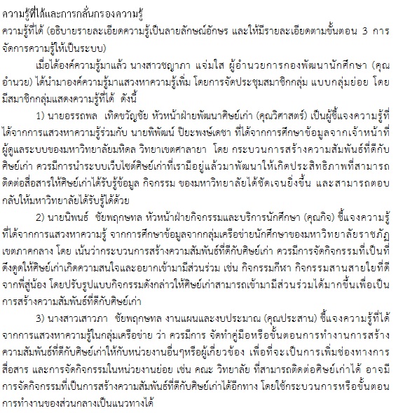 แผนการจัดการความรู้ (องค์ความรู้กระบวนการสร้างความสัมพันธ์ที่ดีกับศิษย์เก่า)
